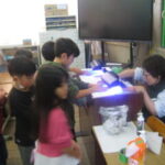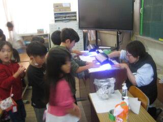インフルエンザが和歌山市内で流行しています。少しでも感染から身を守るための方法として、手洗いは有効です。講師の先生からお話を聞いた後、子供たちは実際に手を洗い、光を手に当てると洗い残しが見える装置を使い、自分の手洗いの仕方を考える機会になりました。