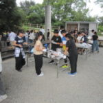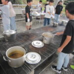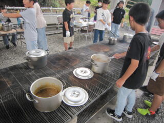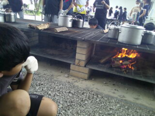 青少年国際交流センターに着いてすぐに、野外炊飯の説明を聞きました。野菜を切ってカレー作りをがんばる子、お米をきれいに洗ってごはんを炊く子、かまどで火をおこす子、それぞれ一生懸命に取り組んでいました。