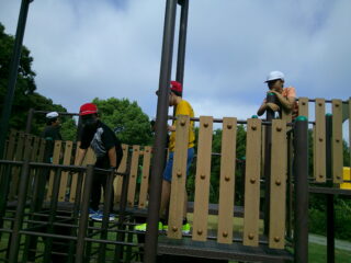 二日目、「家族の広場」の大きな遊具で遊びました。お天気も良くとても気持ちがよかったです。