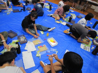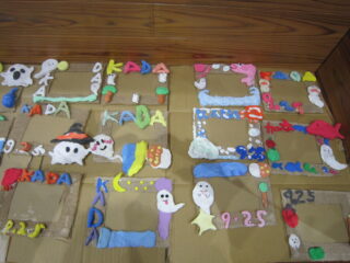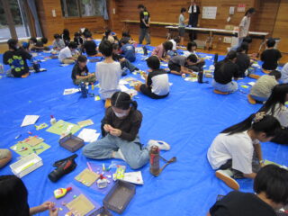 午後の活動は、フォトフレーム作りです。「加太合宿」というテーマで、「めで鯛」や海、お化けを作っている子が多かったです。どんな写真を入れるのか楽しみです。
