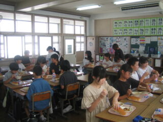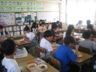普段のようすから 6年生給食の時間 投稿日:2025年10月4日2025年10月4日 校内をまわっていますと子どもたちの楽し気な声が聞こえてきます。 先日は6年生の給食時間におじゃましました。手際よく準備し、いいマナーで楽しく食事をしていました。