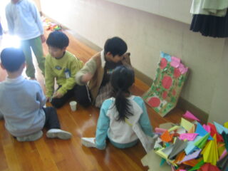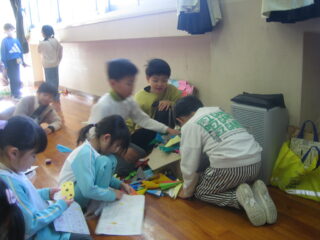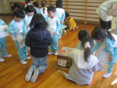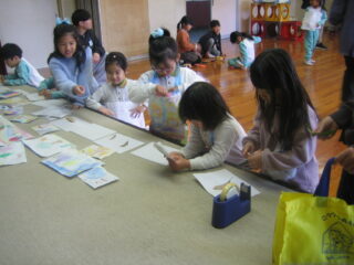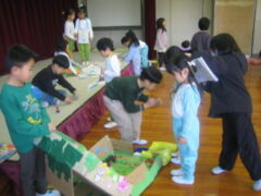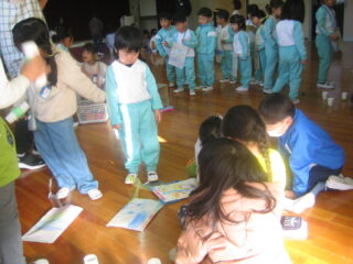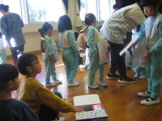1年B組 幼稚園へ出張おもちゃランド 投稿日:2026年2月1日 1年B組では、生活科の学習で取り組んだおもちゃランドを自分たちが楽しむだけではなく、幼稚園のお友達にも楽しんでもらいたいと考えました。 そこで今回は、自分たちが作ったおもちゃを幼稚園のお遊戯室へ運び、出張おもちゃランドを開催。園児のみんなが分かりやすいように説明をしたり、各コーナーで手作りの景品を作ってプレゼントしたりなど、思う存分楽しんでもらえるようなたくさんの工夫がされていました。