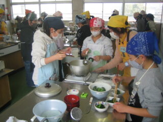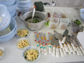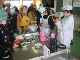 2学期から大切に育ててきた大根、ブロッコリーを調理しました。JAの方が大勢来てくださり調理の仕方を説明してくださいました。