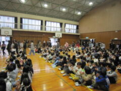 2月25日(水)6年生を送る会をしました。6年生の入場曲は「マツケンサンバ」!昨年の送る会で自分たちが5年生として踊った曲でした。