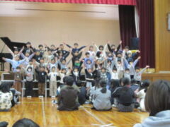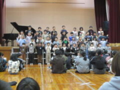 最後に先生たちから「友~旅立ちの時~」の歌のプレゼントと1年生から「しおり」のプレゼントでした。