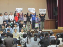 4年生からは、小学校生活の思い出に関するクイズと組体操で踊った曲のプレゼント