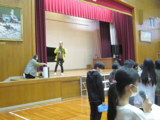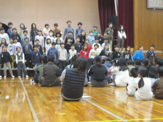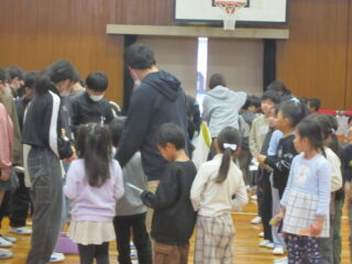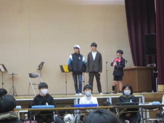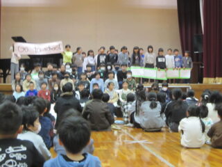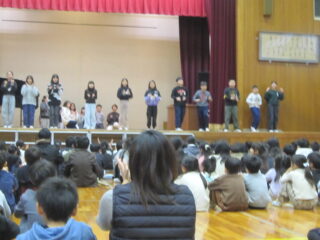 4年生からは、小学校生活の思い出に関するクイズと組体操で踊った曲のプレゼント