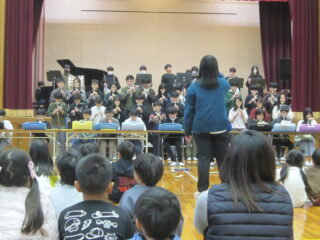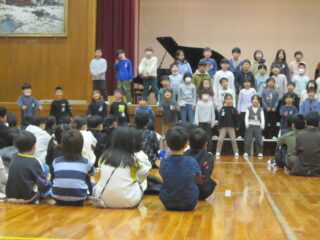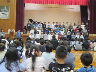 最後に先生たちから「友~旅立ちの時~」の歌のプレゼントと1年生から「しおり」のプレゼントでした。