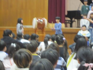 3年生からは、「和太鼓」にあわせての応援と「チャレンジ」の歌のプレゼント。和太鼓の音がドンと心に響きました。