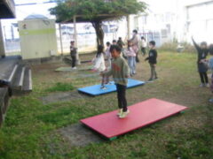 お友達と回数を競い合ったり、なわとび練習台を使って二重跳びの練習をしたりしています。各クラスとも体育の授業でも取り組んでいますし、1月には、にしわさ活動でなわとび大会も予定しています。冬休み中の体力づくりにも、なわとびをおすすめします!