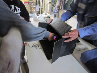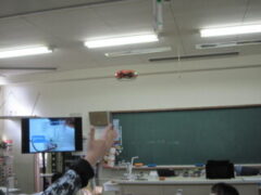 ドローンに蓄電して飛ばすこともしました。センサーが付いているので手を近づけるとドローンが離れていきます。みんなで楽しみました。