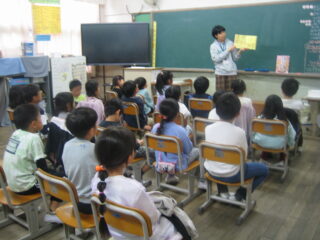9月1日(月)「おかなしころころ」さんがきて、1年生と2年生に読み聞かせをしてくださいました。
