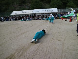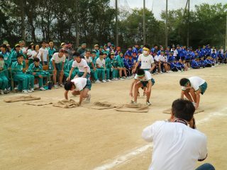 ◇ 体育大会の予行と準備(10/4 水) 昨日の雨のせいで、今日が体育大会の予行&準備となりましたが……、早くも少し過熱気味な3年生の競技「綱取り」が見られました。明日は晴れるかな?