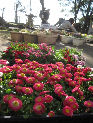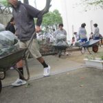 ◇ 愛育会 親子草刈(10/14 土) 愛育会施設整美部主催の親子草刈、今年も沢山のご参加をいただき、ありがとうございました。今年は事前に校務員さんが伐採してくれていた樹木の片付けと恒例の花植えをお願いしました。子ども達も、中間テストの直前でしたが、部活動の生徒を中心に大勢参加してくれました。