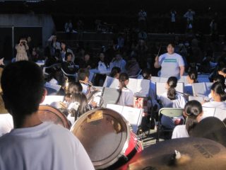 ◇ 吹奏楽部が「竹燈夜 in 加太」に出演(10/14 土) 「竹燈夜 in 加太 サンセットライブ」に吹奏楽部が今年も参加、演奏を披露しました。雨の降りそうな怪しい天気でしたが…、演奏中は降ることもなく、楽しい一時を提供できました。