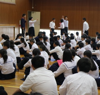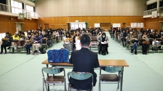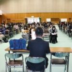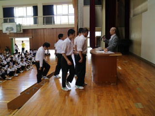 ◇ 生徒会役員 新旧交代式(10/11 木) 先日の選挙で選ばれた、新しい生徒会役員の皆さんが今日から活動を始めます。きょうはまず、新旧役員の引き継ぎ式でした。