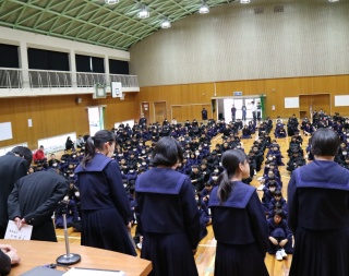 ◇ 終業式 (12/22 木) 祝日の関係で、今年は今日が終業式でした。2限まで授業の後、大掃除・終業式、午後は学活でしたが、昼休みに暴風警報が出たために、慌ただしい午後になりました。