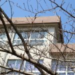 ◇ 春休みの風景(部活動と桜) (4/6 水) 4月になりました。温かい風の中に、正門の桜が散り始めています。今日も部活動の生徒が、元気に登校しています。