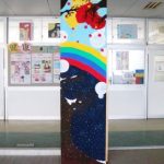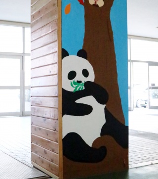 ◇ 生徒玄関の柱に!(3/30 木) 生徒玄関の柱に、美術部の皆さんが描いてくれた壁画ができています。春夏秋冬をテーマにしたものです。登下校時に、ちょっと明るい気分にしてくれますね。