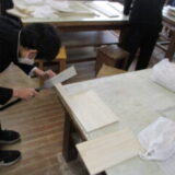 設計図を基にブックスタンドや、コーナーラック等を製作しています。道具を駆使し製図や加工等、作品つくりに取り組んでいます。年度末が近づいてきました。限られた授業回数の中、完成に向けて丁寧に製作しています。