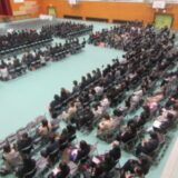 その後、3年生全員が体育館に入り、歌練習や学年集会を行いました。学年全体が集まっての歌練習や集会は今回が最後です。