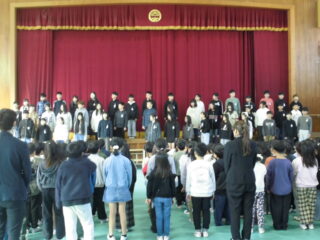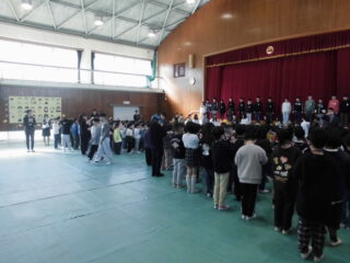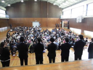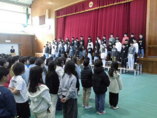 3月13日(金)「お別れ式(最終練習)」6年生とのお別れ式の最終の練習が1限体育館で行われました。1~3年生の皆さんの呼びかけはとても元気でした。また入退場の3年生のリコーダーが本当に上手で感動しました。日頃の練習の成果がよく出ていますね!