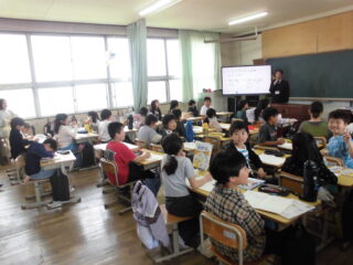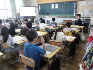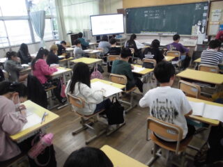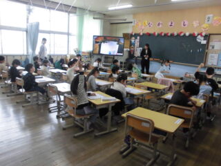 10月30日(木)「兵庫県宍粟(しそう)市立山崎南小学校とのリモート交流」(5年生)山崎南小学校5年生と本校5年生が遠隔交流を行いました。お互いの学校の様子など発表し合いました。