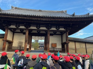 修学旅行が始まりました。まずは法隆寺です。雨が上がってよかったです。