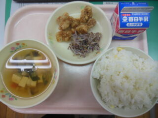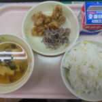 今日の献立は、栗ごはん🌰とりの梅酢あげ・ゆかりあえ・すましじる です。