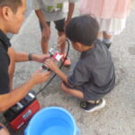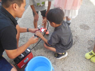 おもちゃランドで制作した、ペットボトルロケット🚀を飛ばしています。