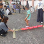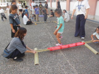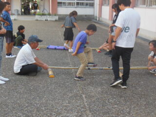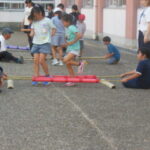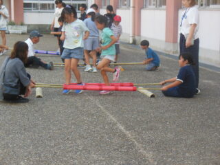 バンブーダンスをしたよ(学校ボランティア) 投稿日:2025年10月8日 昼休憩、学校ボランティアさんのご協力のもと、バンブーダンスを楽しみました。リズムをとって飛ぶのが難しいですが、さすが!子供たちです。すぐに慣れ上手に飛ぶことができました。