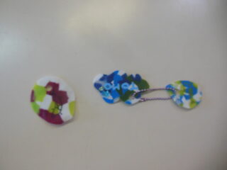 ペットボトルの蓋を細かく切り、アイロンで温めて引っ付けました。