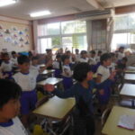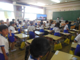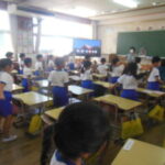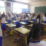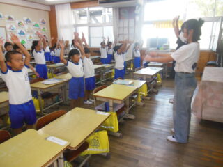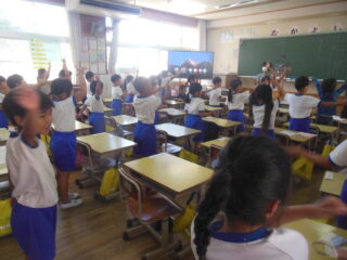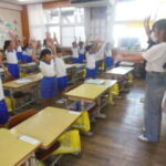 はじめてのホイッスルです。お兄さん・お姉さんに教えてもらいながら踊っています。
