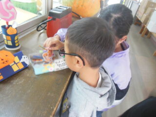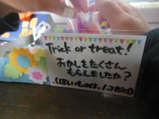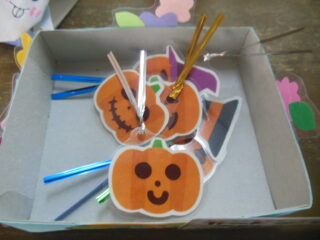 ハロウィンのプレゼントです。ひとり一つだけだよ。しおりに使ってね。