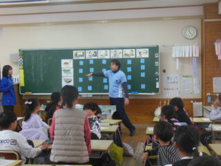 ALTの授業です。ゲームを通して曜日や単語を使えるようになってきました。