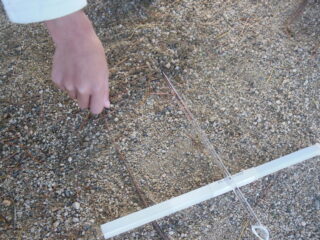 理科の様子です。日なたと日かげの地面の温度の違いを測っています。