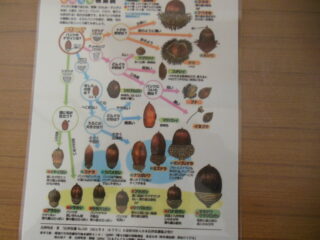 職員玄関に、どんぐりの種類がのっている掲示を見つけました。