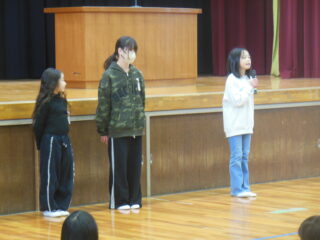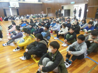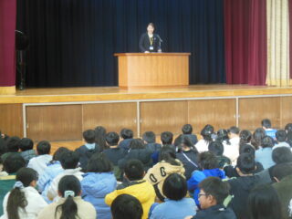 3学期が始まりました!(始業式) 投稿日:2026年1月6日2026年1月6日 子どもたちの元気な声が、学校に戻ってきました。今まで静かであった学校が、一気に活気にあふれ目覚めたようです。 始業式では、新学期にふさわしい元気な声で校歌を歌い、校長先生の話には、真剣に耳を傾けている姿を見ると、一段と成長したように思えます。 最後に、新児童会役員が紹介され、拍手で迎えられました。 3学期は、授業日数も少なく、あっという間に終わります。一人ひとりが目標を持ち、より一層輝けるように、我々教職員も全力を尽くしたいと思いますので、宜しくお願いします。