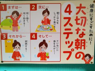 保健室前の掲示物です。勉強も大事、スポーツも大事、遊びも大事ですが、何より大事なのが毎日の生活を元気に過ごすことです。