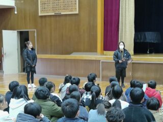 アスリートに教えてもらいました(6年生) 投稿日:2026年1月20日 日本テレビの企画で「アスリーチ」というものがあります。プロのアスリートが来校し、得意な運動を教えてくれるものです。 今日は、本校にフィギュアスケートの選手が来校し、ダンス(踊る)運動の楽しさをレクチャーしてくれました。 子どもたちは、はじめは戸惑いを見せていましたが、さすが子どもたちです!わずか短時間でステップや振り付けをマスターし、楽しく踊っていました。