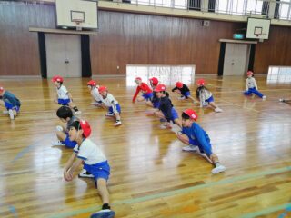 寒い日でも元気です🤗ケガの予防のため、しっかり準備体操をしています。