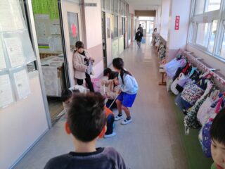 全校児童がんばっています(朝の清掃活動) 投稿日:2026年1月29日 チャイムが鳴ったら、すぐに掃除場所に行って、掃除を始めています。どの子も一生懸命です。声をかけあって協力しています。 1年生も、とても上手になりました。 みんなの、おかげで学校はいつもピカピカです✨。