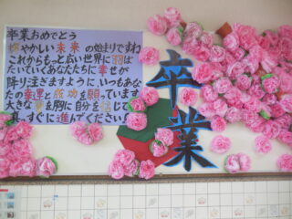 図書室前の掲示です。6年生の卒業をお祝いしてくれています。ちなみに題字は6年生の女の子が書いてくれました。