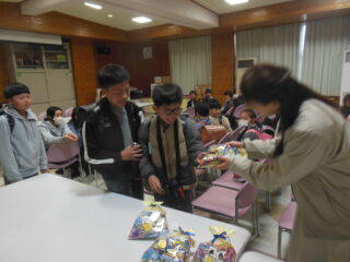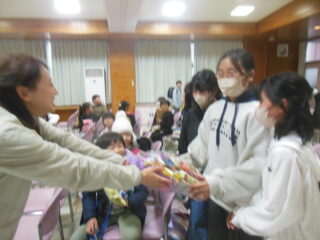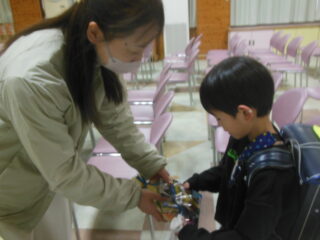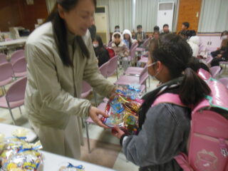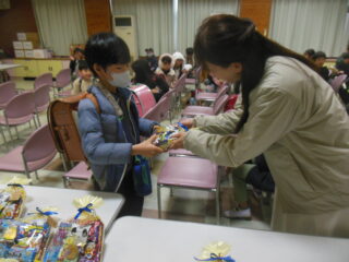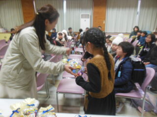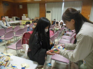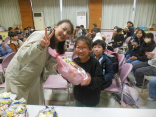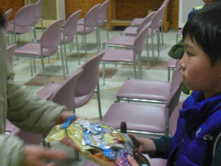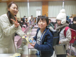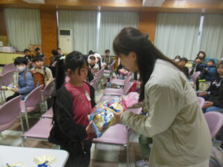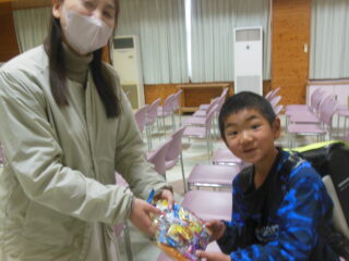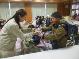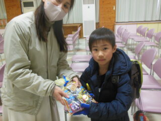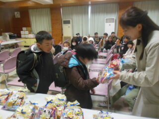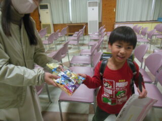 ウオークラリーの表彰式を行いました。景品のお菓子の量に、子どもたちはびっくり!していました。