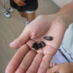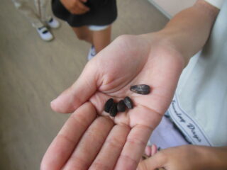 頑張って育てたヒマワリから種を収穫しました。大きく育ちました。顔よりも大きいです。