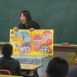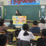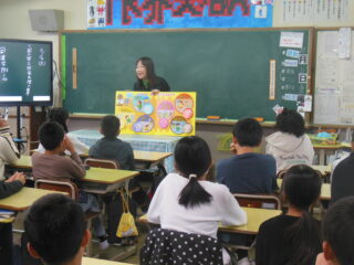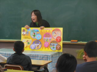 防災の必要性について、絵本を使って授業してもらいました。