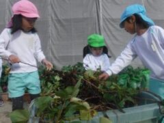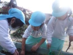 「もう、出来てるから抜いてもいいんちゃう?」「僕も抜きたい!」「私も行く」と言葉が聞かれ、一目散に園庭に駆け出しました。