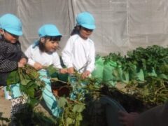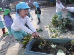 幼稚園が改装工事中ということもあり、プランターでサツマイモを育てていました。