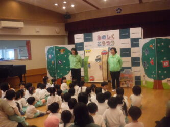 タレントの「さっぴょん」こと本谷紗己さんが「きいくんのこうつうあんぜん」の紙芝居を読んでくれました。車に閉じ込められたときにどうすればいいのかなと聞かれると「クラクションを鳴らす」「大声で叫ぶ」など考えたことを話す姿が見られました。