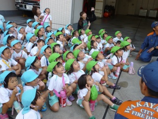 和歌山城に親子で遠足に行ってきました。お天気にも恵まれて、風も心地よく絶好の遠足日和となりました。3歳児つくし組は初めての遠足。おうちの方と一緒に動物をみてまわりました。4歳児すみれ組は、クラスの先生と一緒に動物を見つけたり、見つけた動物にシールはったりして楽しみました。5歳児こすもす組は石垣にある刻印を見つけたり、天守閣に登ったりしました。天守閣から広場を見ると、おうちの方がハートのかたちでメッセージを伝えてくれていました。こすもす組のみんなは「わあ!!ハート♡になってる!」「かわいい」「大好き!!」と大喜びでした。おうちの方、本当に素敵なプレゼンとありがとうございました。